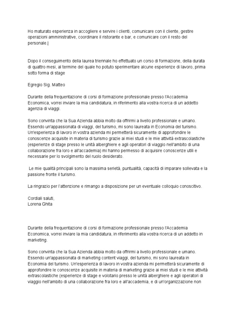 40 lettera di presentazione per agenzia viaggi