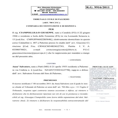 Avvocato - comunicazioni con il cliente - Studio Legale Appetiti 1. Informative. Lo studio terrà costantemente aggiornata il Cliente sull'attività svolta per suo conto e, in particolare, fornirà: • Informative periodiche e complete sugli sviluppi e sui progressi del caso; • Delucidazioni sui procedimenti in corso e sulle strategie adottate per le azioni legali intraprese; FAC-SIMILE DELLA DICHIARAZIONE DELL'AVVOCATO FAC-SIMILE DELLA DICHIARAZIONE DELL'AVVOCATO DA REDIGERE SU CARTA INTESTATA DELLO STUDIO LEGALE. Il sottoscritto Avv.. lettera di comunicazione di nomina quale difensore d ufficio Diversamente è suo dovere corrispondere l'onorario al proprio difensore (sia esso di fiducia o d'ufficio). Tanto detto, La invito a prendere contatto con il mio studio per concordare la linea... Avv. Paolo Nesta - Modulistica varia Lettera richiesta di risarcimento danni alla persona causati da prodotto difettoso. Lettera richiesta di risarcimento danni causati da merce in vendita nel supermercato Lettera richiesta di risarcimento danni per i danni a persone Lettera richiesta di risarcimento danni per i soli danni a cose