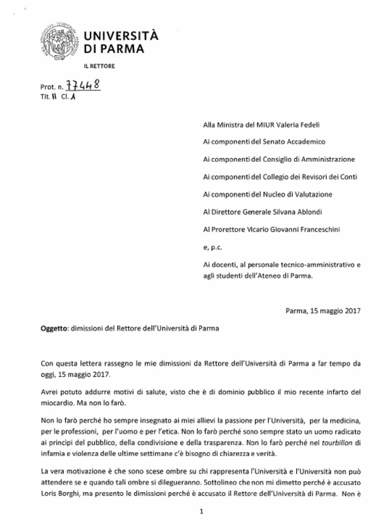 Lettera di dimissioni 2017
