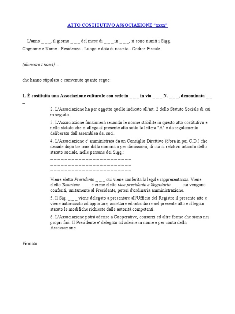 Associazione Atto Costitutivo e Statuto | PDF